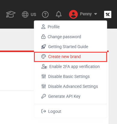 NAVIGATION Header > (click your username) > Create New Brand/Manage Branding Info