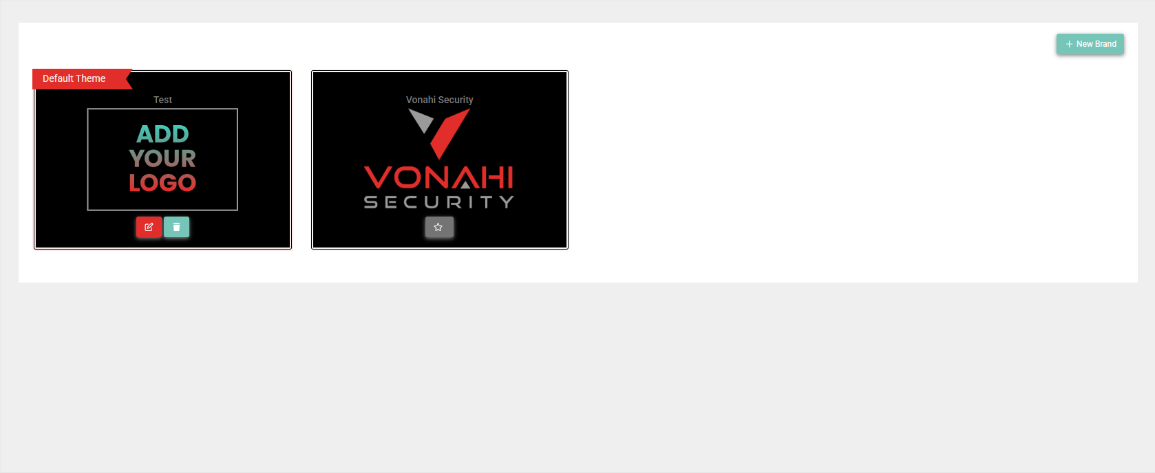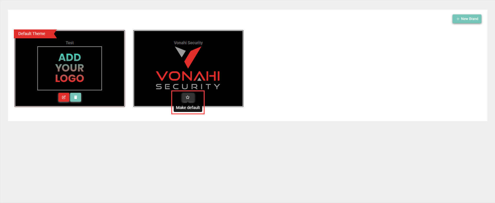 If you want to change the brand that is currently applied to the portal, click the star in a brand tile on the Manage Branding Info of [Account Name] page to make that brand the default.