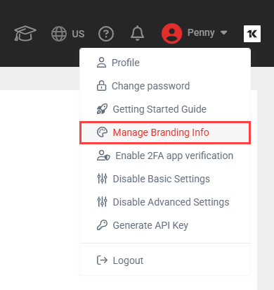 Alternatively, if the account already has at least one custom brand, click Manage Branding Info in the drop-down menu.