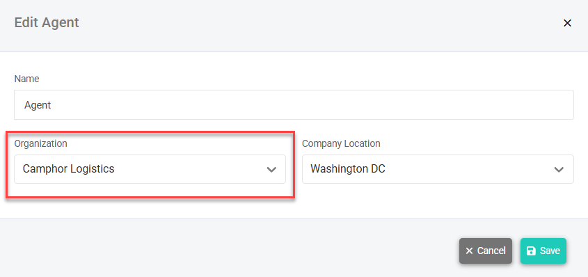 - From the Organization drop-down menu, select the organization the agent should now belong to.