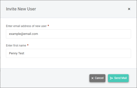- In the Invite New User window, enter the email address and first name of the user you are inviting to the portal.