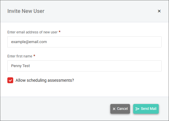 - Optionally, select the Allow scheduling assessments checkbox to grant this user permission to schedule assessments for their organization. Refer to Scheduling an assessment.