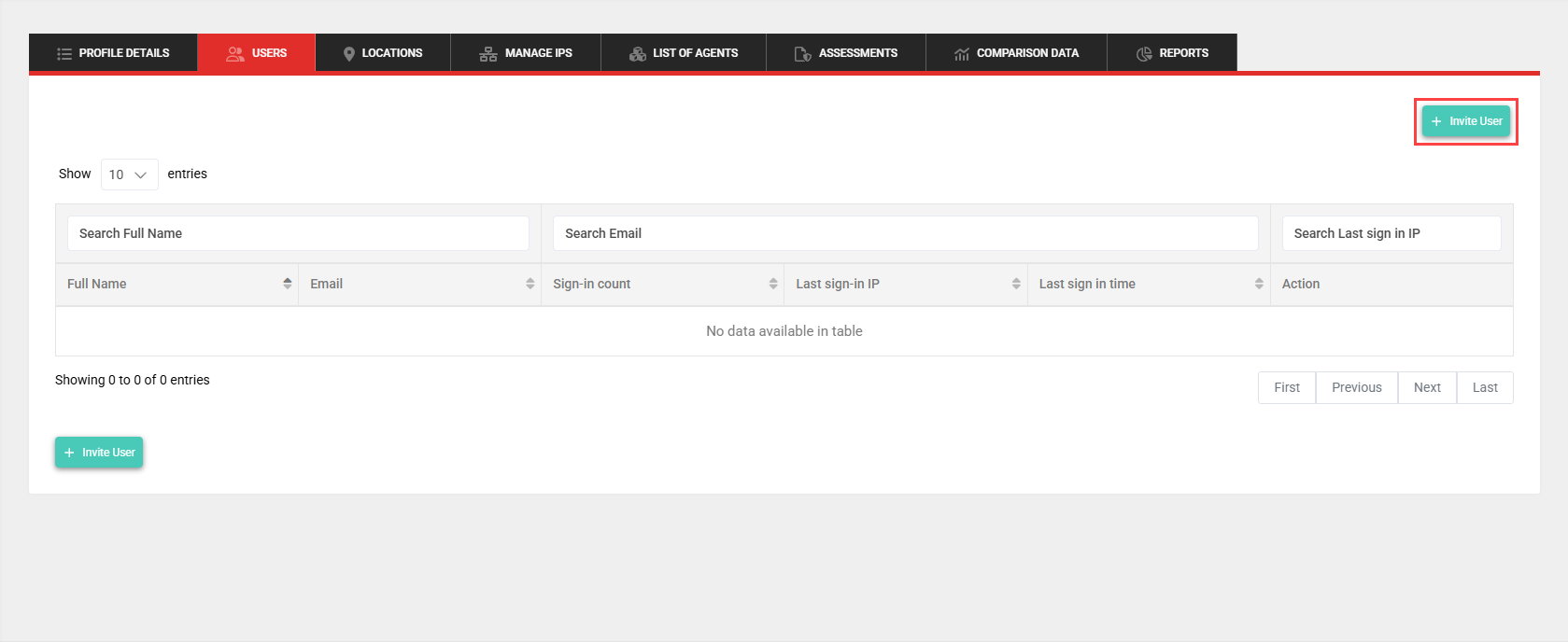 - Click Invite User.