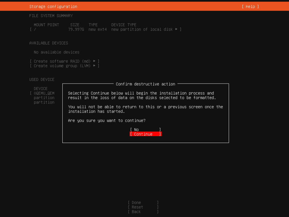 - Click Continue to format the disk.