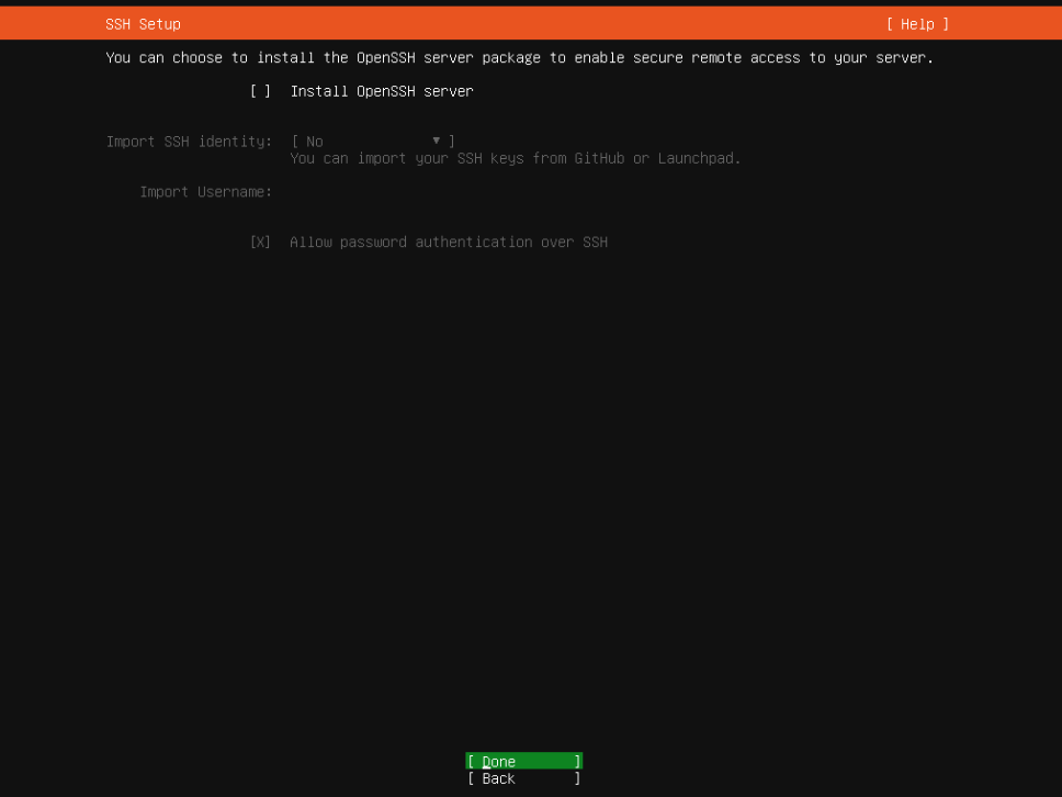 - SSH Setup: Skip this step and do not install openssh.