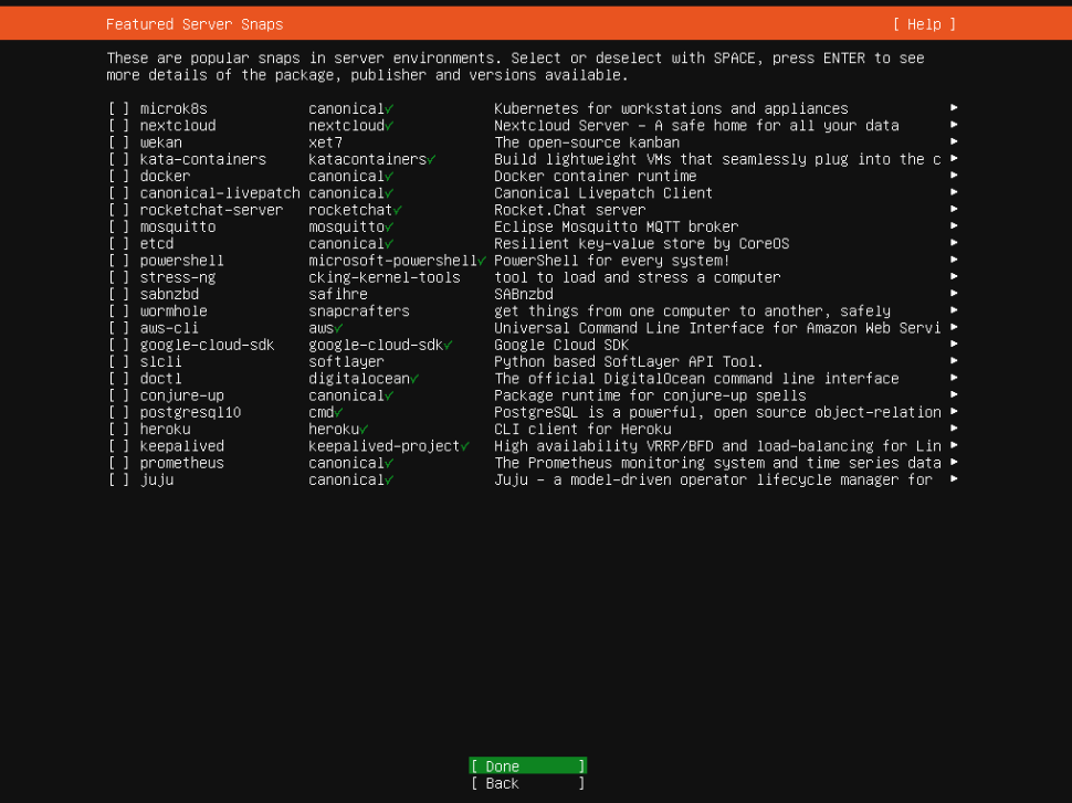 - Featured Server Snaps: Skip and do not install any additional snaps or features.