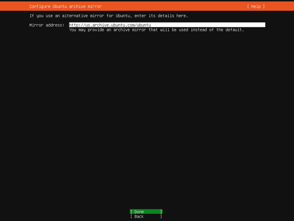 - Configure Ubuntu archive mirror: Leave default.