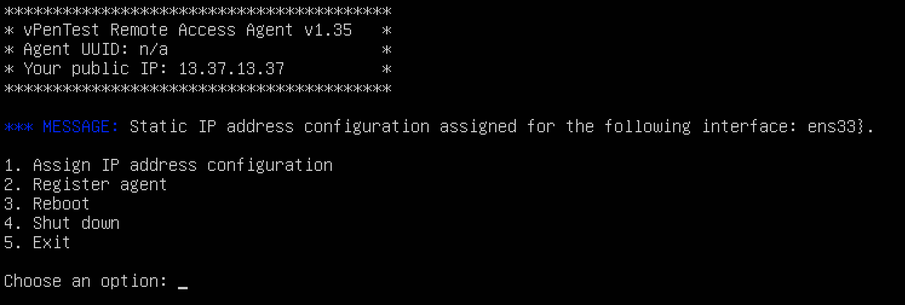 After pressing the Enter key, you'll see a confirmation screen within the Agent that looks similar to the following:
