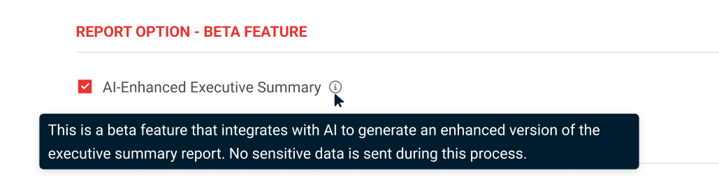The AI-Enhanced Executive Summary is an additional report that builds on the existing executive summary by leveraging AI to provide: