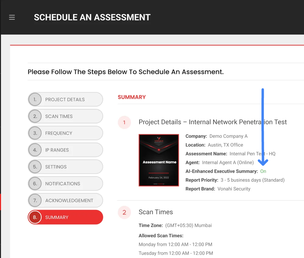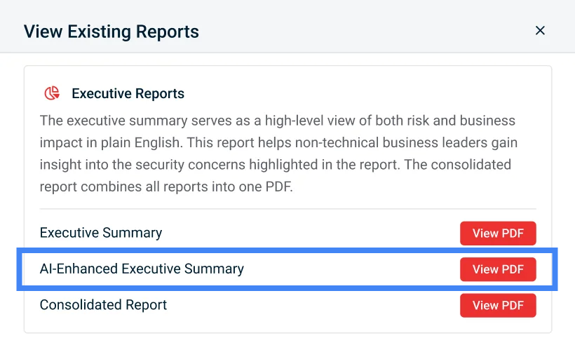 We’d love your feedback on the quality and value of the AI-Enhanced Executive Summary Report. To provide feedback, please log into vPenTest and visit: Feedback for AI-Enhanced Executive Summary Report.