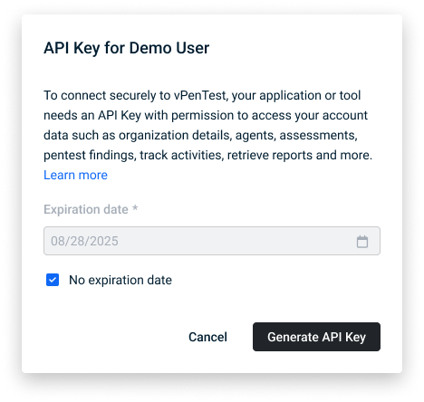 Step 1: Generate an API key in vPenTest