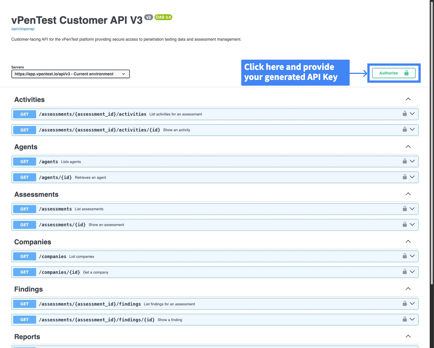 - Once your API key is generated, visit the vPenTest API documentation.