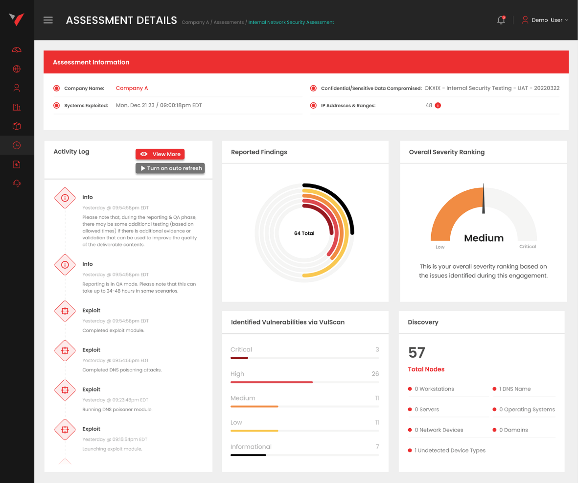 Upon import of the VulScan results into a scheduled assessment in vPenTest, you will now be able to view imported vulnerability scanning results within the Assessment Details page once the pentest kicks off.