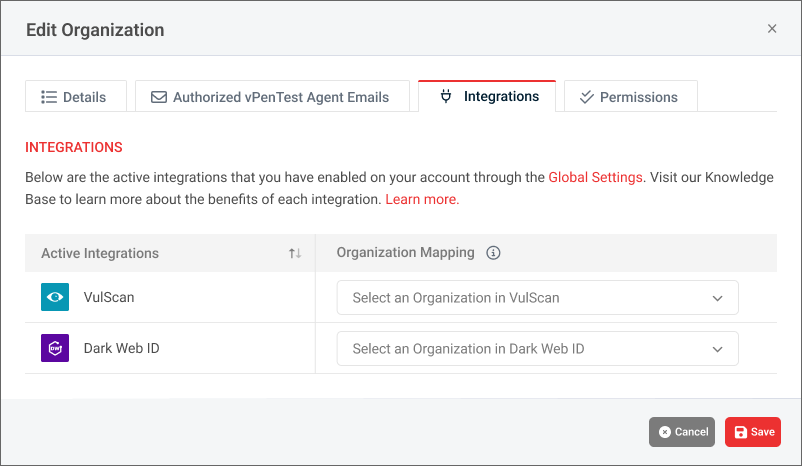If you need to change the VulScan organization synced with a particular organization in vPenTest, follow these steps to edit and change the mapped organization: