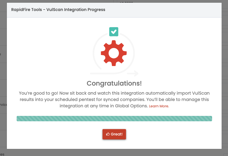 - After mapping all the organizations and hitting complete integration, you’ll get the confirmation pop-up below.