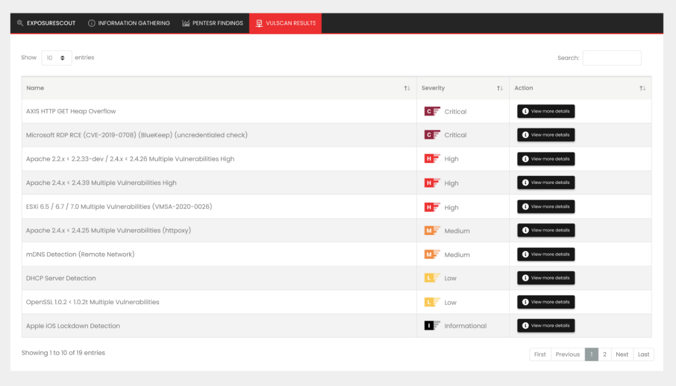 A new tab called VulScan Results will be added next to the Pentest Findings tab. These are the results from VulScan there were imported into your scheduled assessment for mapped companies.