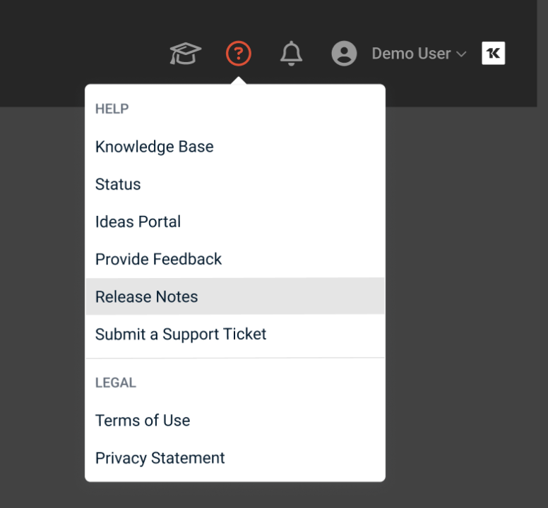 vPenTest now has a completely revamped in-app Help menu for all users. The new menu is built in React with the latest design standards, features updated links to Knowledge Base, Status, Ideas Portal, Release Notes, and more—and now includes a Provide Feedback option that launches a feedback survey right from the menu.