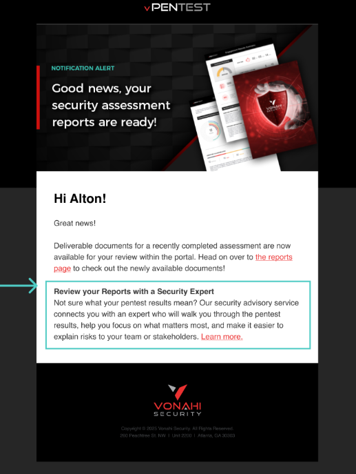 Added content at the end of the email about our new report review service. This enhancement aims to provide MSP partners and MME customers with easy access to learn more about our consulting services directly from their email communications