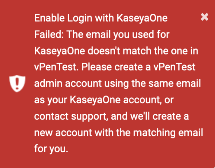 Updated error message when Enable Log In with KaseyaOne fails due to non-matching emails to make it more user-friendly.