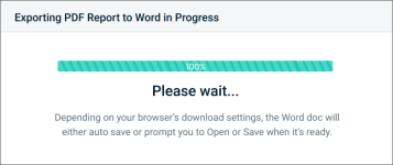 Once you click the Export to Word button, you’ll see a pop-up to let you know the export is in progress.