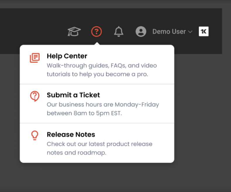 vPenTest now has a completely revamped in-app Help menu for all users. The new menu is built in React with the latest design standards, features updated links to Knowledge Base, Status, Ideas Portal, Release Notes, and more—and now includes a Provide Feedback option that launches a feedback survey right from the menu.