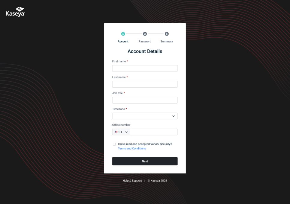 Updated the overall UI for the User Onboarding registration form, making it more consistent with Kaseya's IT Complete platform for a more unified platform experience